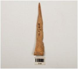 | Description / विवरण | A bone point made on a long bone pointed one part smoothly polished surface. |