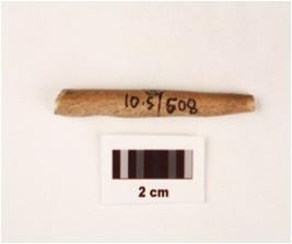 | Description / विवरण | A bone point, both ends broken and polished surface. |