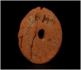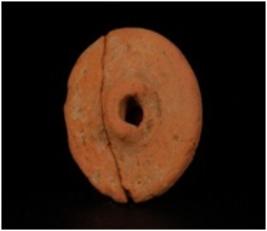 | Description / विवरण | Terracotta wheel, circular in shape with hub and Perforation in the middle. |