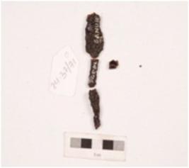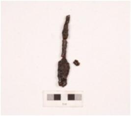 | Description / विवरण | A fragment of iron arrow head, pointed ends, surface is uneven and rusted and long tang. |