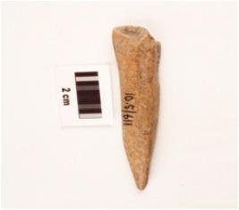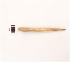 | Description / विवरण | Fragment of bone point, pointed one end and other end thick, polished smooth surface and circular in section. |