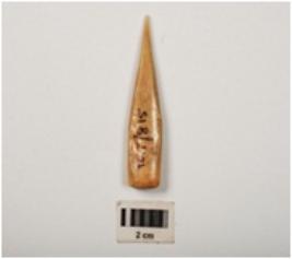 | Description / विवरण | A bone point made on a long bone, smoothly polished upper and lower surface. |