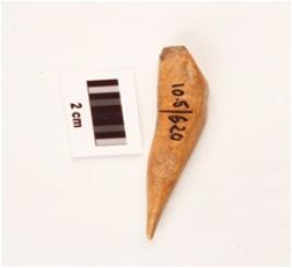 | Description / विवरण | Fragment of bone point with smooth surface, pointed one end other end thick and square in section. |