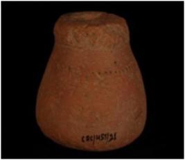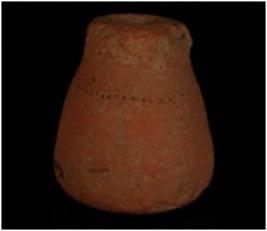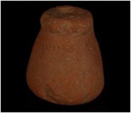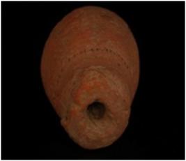 | Description / विवरण | A terracotta dabber with a hole in the middle. |