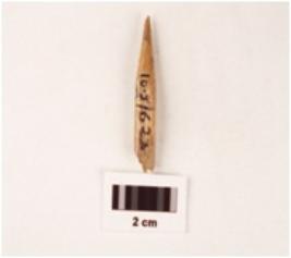 | Description / विवरण | A sharp bone point, pointed one end other end broken and polished surface. |