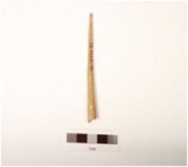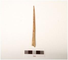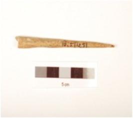 | Description / विवरण | Fragment of bone point, pointed top, broken flat bottom, flat surface, polished, brown in colour. |