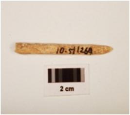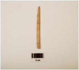 | Description / विवरण | Fragment of bone point, pointed top, broken from bottom, round in shape, rough surface, off white in colour. |