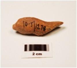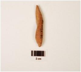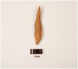 | Description / विवरण | Fragment of bone point, slightly thick in character, uneven in shape and surface, pointed both ends, polished surface, brown in colour. |