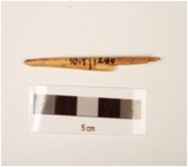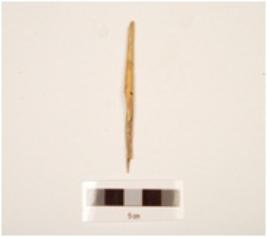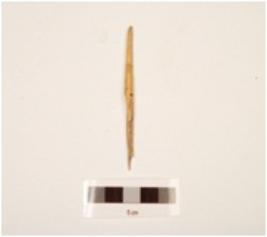 | Description / विवरण | Fragment of bone point, pointed both ends, thin in character, broken from surface and bottom, yellow in colour, polished. |