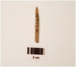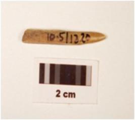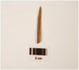 | Description / विवरण | Fragment of bone point, pointed top, broken bottom, round surface, polished, dull earthy in colour. |