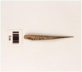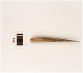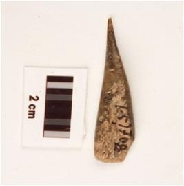 | Description / विवरण | Fragment of bone point, pointed one end, one end flat and other end broken, hightly polished and square in section. |