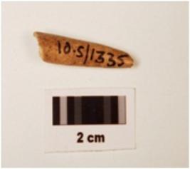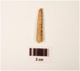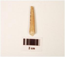 | Description / विवरण | Fragment of bone point, pointed top, slightly broken from top and bottom, round section, polished, surface, off white in colour. |