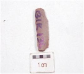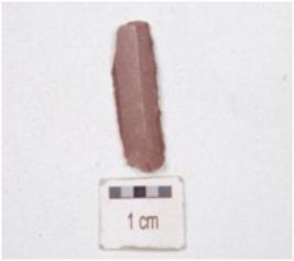 | Description / विवरण | Chert blade, distal end broken, triangular cross section and use wear marks along the cutting edge. |