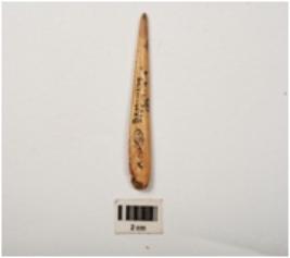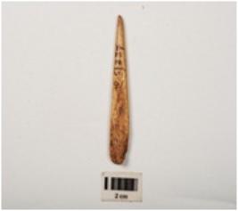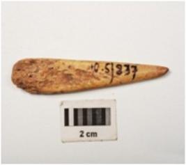 | Description / विवरण | A bone point made on a bone, smoothly polished both sides surface. |