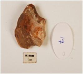 | Description / विवरण | A chert flake prominent ridge on dorsal prepared platform with bulb on ventral. Use wear marks on working edge. |