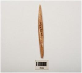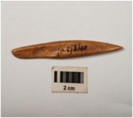| Description / विवरण | A bone point made on a bone, smoothly polished surface both side upper and lower. |