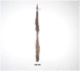 | Description / विवरण | An iron spear with a pointed tip and rusted surface, elongated shaped. |