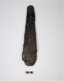 | Description / विवरण | An iron wedge with rusted surface, broad at one end other end is thin. |