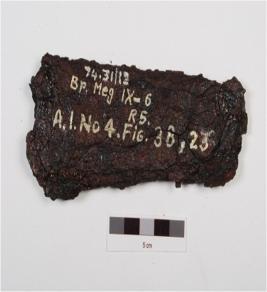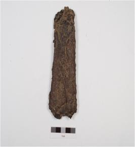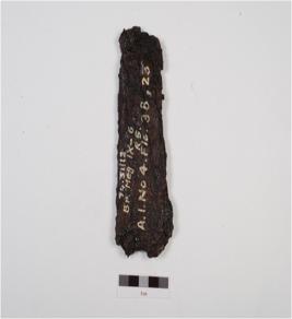 | Description / विवरण | Fragment of an iron wedge or axe with rusted surface and is flat in character, it is rusted chemically treated. |