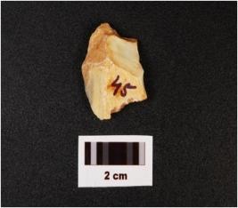 | Description / विवरण | Flake with a striking platform, part of cortex visible. |