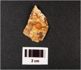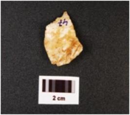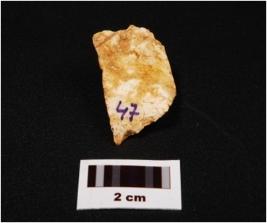 | Description / विवरण | Scraper with a sharp working edge pointed at one end, part of striking platform visible on one side. |