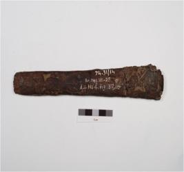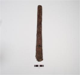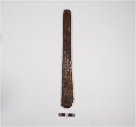 | Description / विवरण | Fragment of an iron chisel with a rusted surface, broken in two piece chemically treated and restored. |