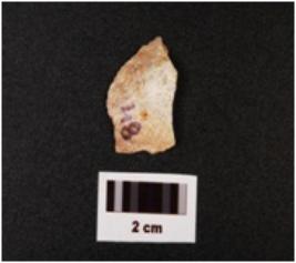 | Description / विवरण | Flake with a sharp working edge, positive bulb visible on one side. |