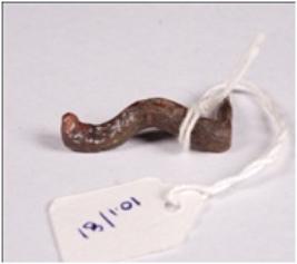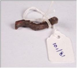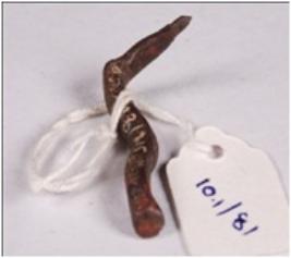 | Description / विवरण | Copper nail having smooth surface with one pointed bent end and one circular flat end with circular section. |