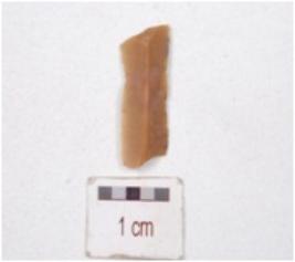 | Description / विवरण | Chert blade, triangular cross-section, both ends broken and use-wear marks along the cutting edge. |