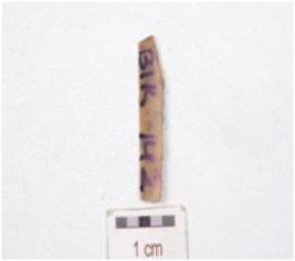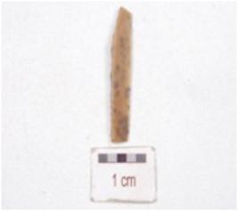 | Description / विवरण | Chert blade, triangular cross-section and use-wear marks along the cutting edge. |