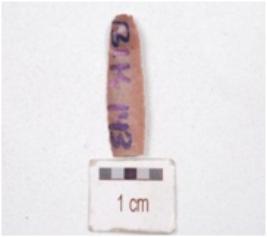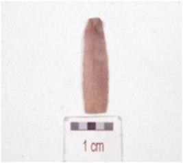 | Description / विवरण | Chert blade, prepared platform, prominent bulb, use-wear marks along the cutting edge and broken from one end. |