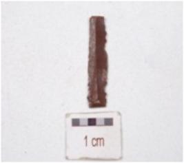 | Description / विवरण | Chert blade, prepared platform and use-wear marks along the cutting edge. |