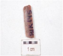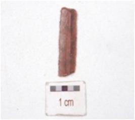 | Description / विवरण | Chert blade, triangular cross-section, one end broken and use-wear marks along the cutting edge. |