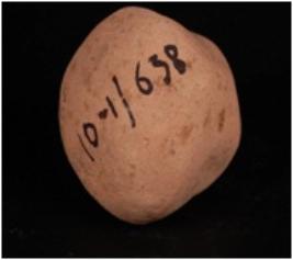 | Description / विवरण | Handmade terracotta sling ball, circular in shape and uneven surface . |