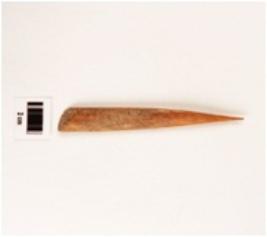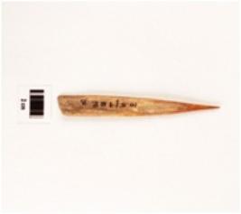 | Description / विवरण | Fragment of bone point, pointed one end, other end flat and damaged, rectangular cross section and plain from one side other side grooved. |