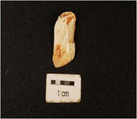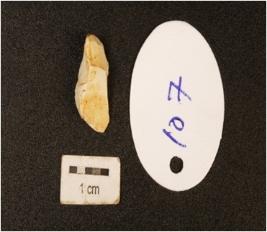 | Description / विवरण | A chert flake with two flake scars on surface. |