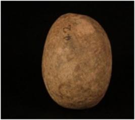 | Description / विवरण | Terracotta handmade ball with smooth surface, made with well levigated clay, well baked, circular in section and traces of chocolate slip on the surface. Particles of mica visible on the surface. |