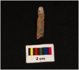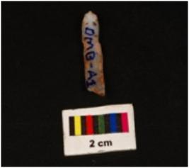 | Description / विवरण | Parallel sided blade with flake scar through the middle of dorsal suface. Working edges with use marks, distal end broken. Proximal end with striking platform visible. |