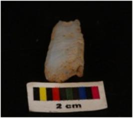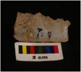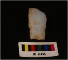 | Description / विवरण | Microlithic blade with use-wear marks on cutting edges, prominent ridges on dorsal surface with bulb on proximal end. |