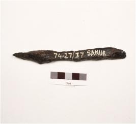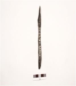 | Description / विवरण | Spear made of iron pointed at one end and flat at other, rough surface and chemically treated. |