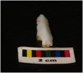 | Description / विवरण | Parallel sided microlith blade with two ridges, tapezoidal section, broken distal and diffused bulb on proximal end. |