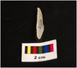 | Description / विवरण | Parallel sided microlith blade with prominent mid ridge on dorsal and use wears marks on cutting edge. Triangular in section. |