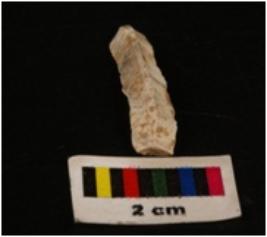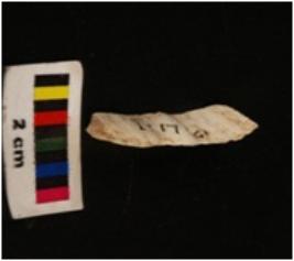 | Description / विवरण | Parallel sided microlith blade with use-wear marks on cutting edges and prominent mid ridge on dorsal surface, prominent bulb on proximal end and triangular in section. |