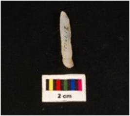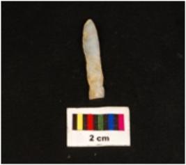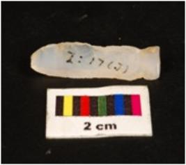 | Description / विवरण | Blade with flake scars, proximal end had striking platform. The flake removes a little below from the proximal end. Distal end pointed. |