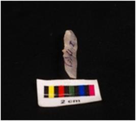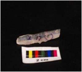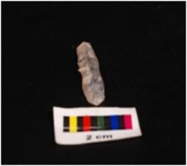 | Description / विवरण | Chalcedony blade with a single ridge, triangular in section, use wear marks on the edges diffused bulb on percussion on ventral side and distal end broken. |