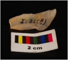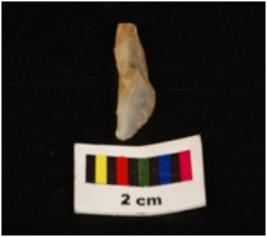 | Description / विवरण | Parallel sided microlith blade with mid ridge on dorsal and use wear marks on cutting edge. Triangular in section. |