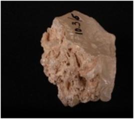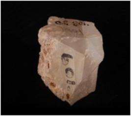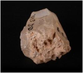 | Description / विवरण | Fragment of an agate core with flake and blade scars, partly rough surface. |