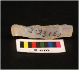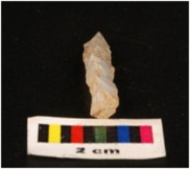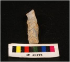 | Description / विवरण | Chalcedony parallel sided blade with a vertical wavy design mid ridge, triangular section. |