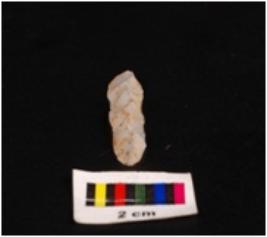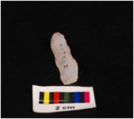 | Description / विवरण | Chalcedony parallel sided blade with a single mid-ridge, diffused bulb of percussion on the ventral side and retouched edges. |