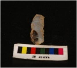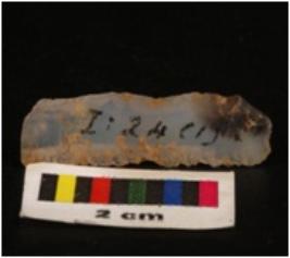 | Description / विवरण | Chalcedony parauel sided blade with a double ridge, trapezoidal section, regularly tetouched edges, heat treatment on raw material. |